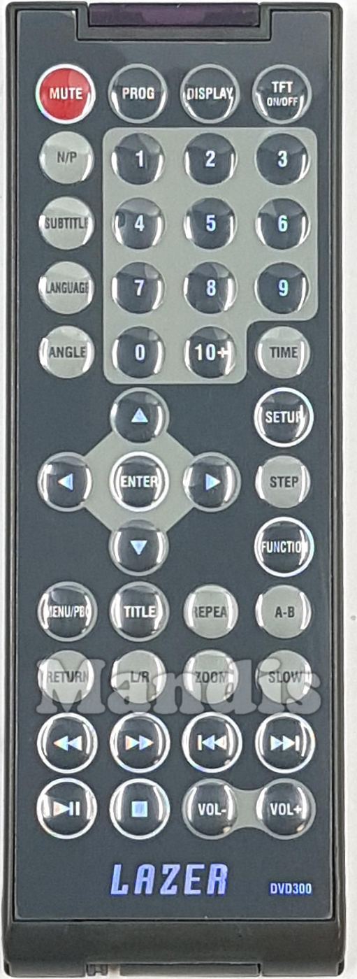 Comandament a distància original DVD300 de la marca Lazer. Es tracta d'un model original de comandament a distància.