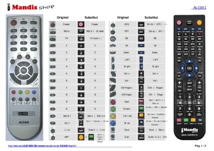 A continuació, us mostrarem la correspondència entre cada un dels botons del comandament original i el botó que realitza la mateixa funció en el comandament de substitució. En alguns casos, és possible que necessiti prémer la tecla SHIFT abans de prémer un altre botó per realitzar certes accions. Aquestes funcions addicionals sovint no s'utilitzen gaire i s'inclouen per facilitar la comprensió del comandament de substitució, o perquè el comandament original té més botons que el seu equivalent.