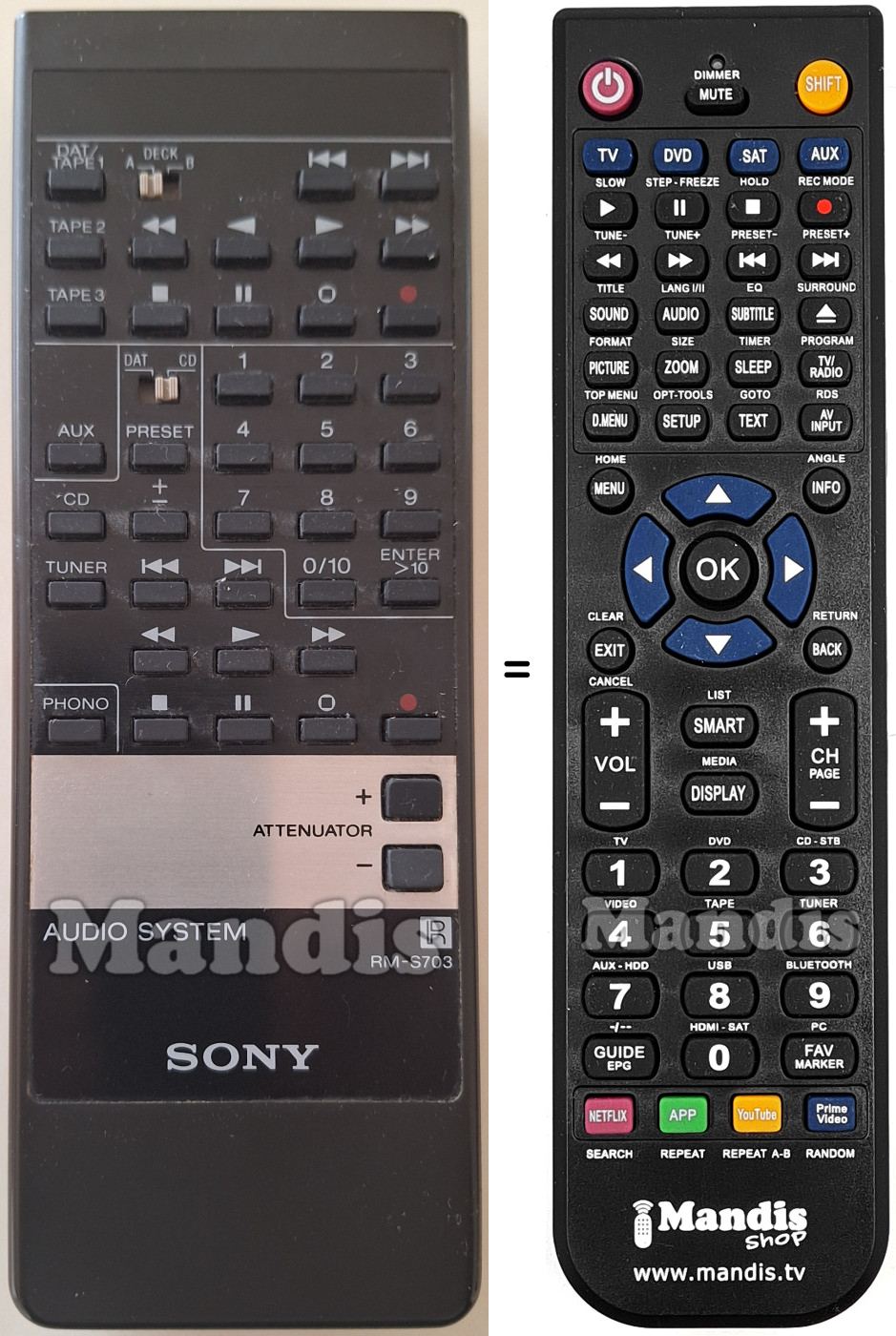 Aquest comandament a distància substitueix la majoria de les funcions del teu RM-S703 (146580111). No és un comandament universal, sinó una còpia amb la majoria de les tecles i funcions del teu original.