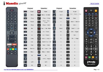 A continuació, us mostrarem la correspondència entre cada un dels botons del comandament original i el botó que realitza la mateixa funció en el comandament de substitució. En alguns casos, és possible que necessiti prémer la tecla SHIFT abans de prémer un altre botó per realitzar certes accions. Aquestes funcions addicionals sovint no s'utilitzen gaire i s'inclouen per facilitar la comprensió del comandament de substitució, o perquè el comandament original té més botons que el seu equivalent.
