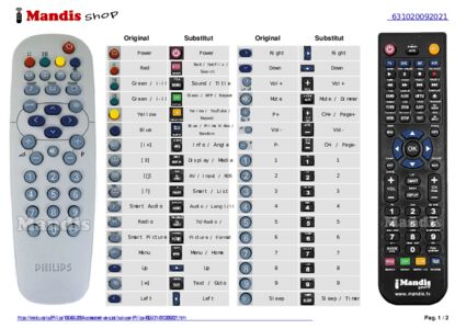 A continuació, us mostrarem la correspondència entre cada un dels botons del comandament original i el botó que realitza la mateixa funció en el comandament de substitució. En alguns casos, és possible que necessiti prémer la tecla SHIFT abans de prémer un altre botó per realitzar certes accions. Aquestes funcions addicionals sovint no s'utilitzen gaire i s'inclouen per facilitar la comprensió del comandament de substitució, o perquè el comandament original té més botons que el seu equivalent.