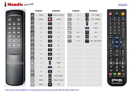 Aquest comandament a distància substitueix completament el teu RC 0205 / 00 en totes les seves funcions. No és un comandament universal, sinó una còpia exacta del teu original.