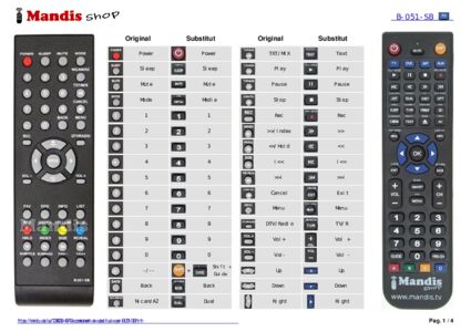 Aquest comandament a distància substitueix completament el teu B-051-SB en totes les seves funcions. No és un comandament universal, sinó una còpia exacta del teu original.