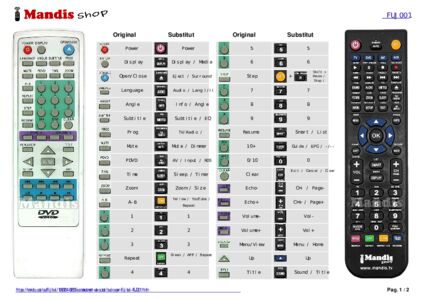 A continuació, us mostrarem la correspondència entre cada un dels botons del comandament original i el botó que realitza la mateixa funció en el comandament de substitució. En alguns casos, és possible que necessiti prémer la tecla SHIFT abans de prémer un altre botó per realitzar certes accions. Aquestes funcions addicionals sovint no s'utilitzen gaire i s'inclouen per facilitar la comprensió del comandament de substitució, o perquè el comandament original té més botons que el seu equivalent.