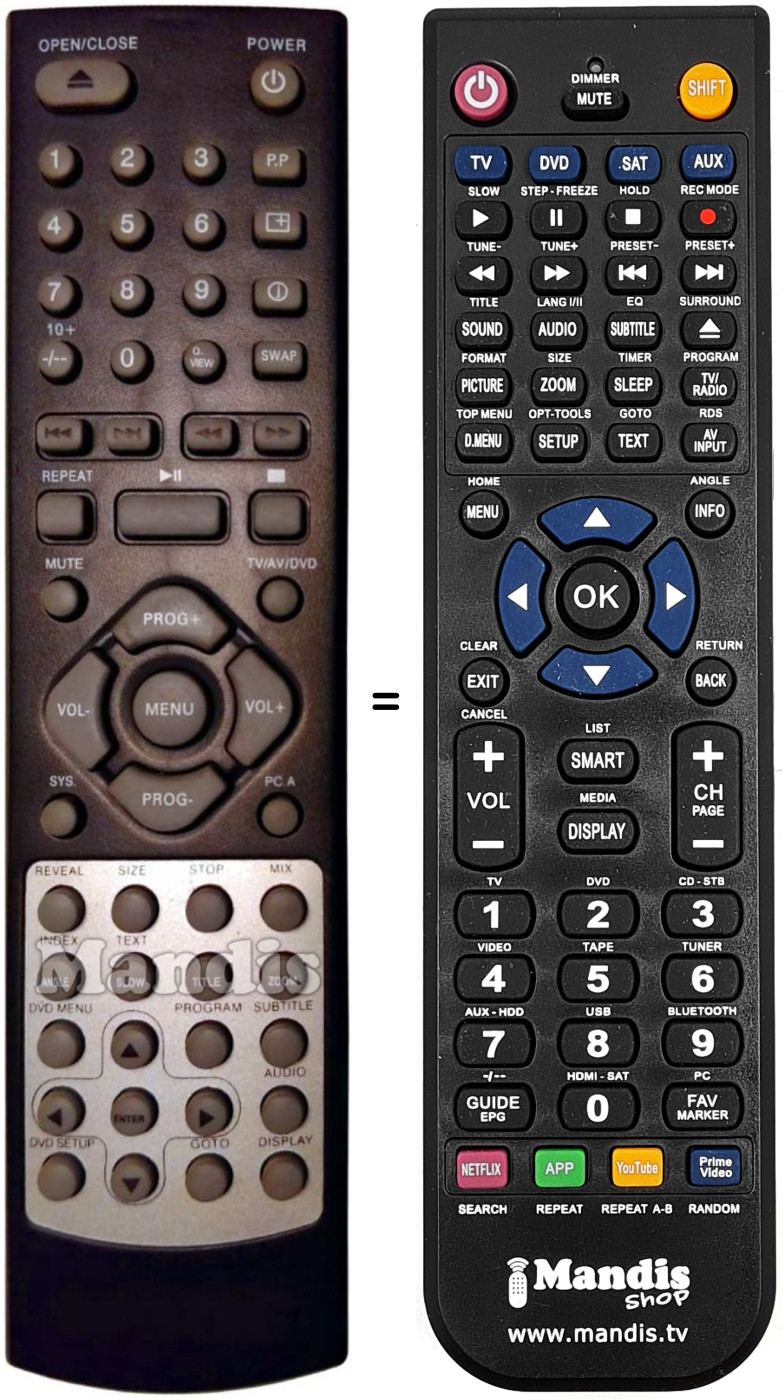 Comandament a distància que substitueix a l'original en totes les seves funcions. No es tracta d'un comandament universal sinó d'una còpia que substitueix l'original. Rebrà el comandament completament preparat per fer-lo funcionar només necessita posar-li les piles. No cal programar-lo. Té total garantia de que el comandament cumplirà amb les mateixes funcions de l'original.