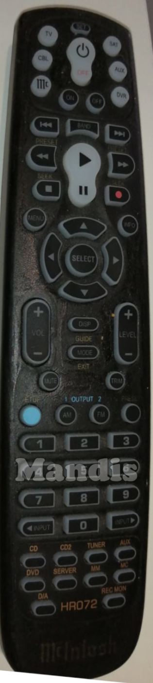 Comandament a distància original HR072 que serveix per televisors de la marca MC INTOSH. Es tracta d'un model original de comandament a distància.