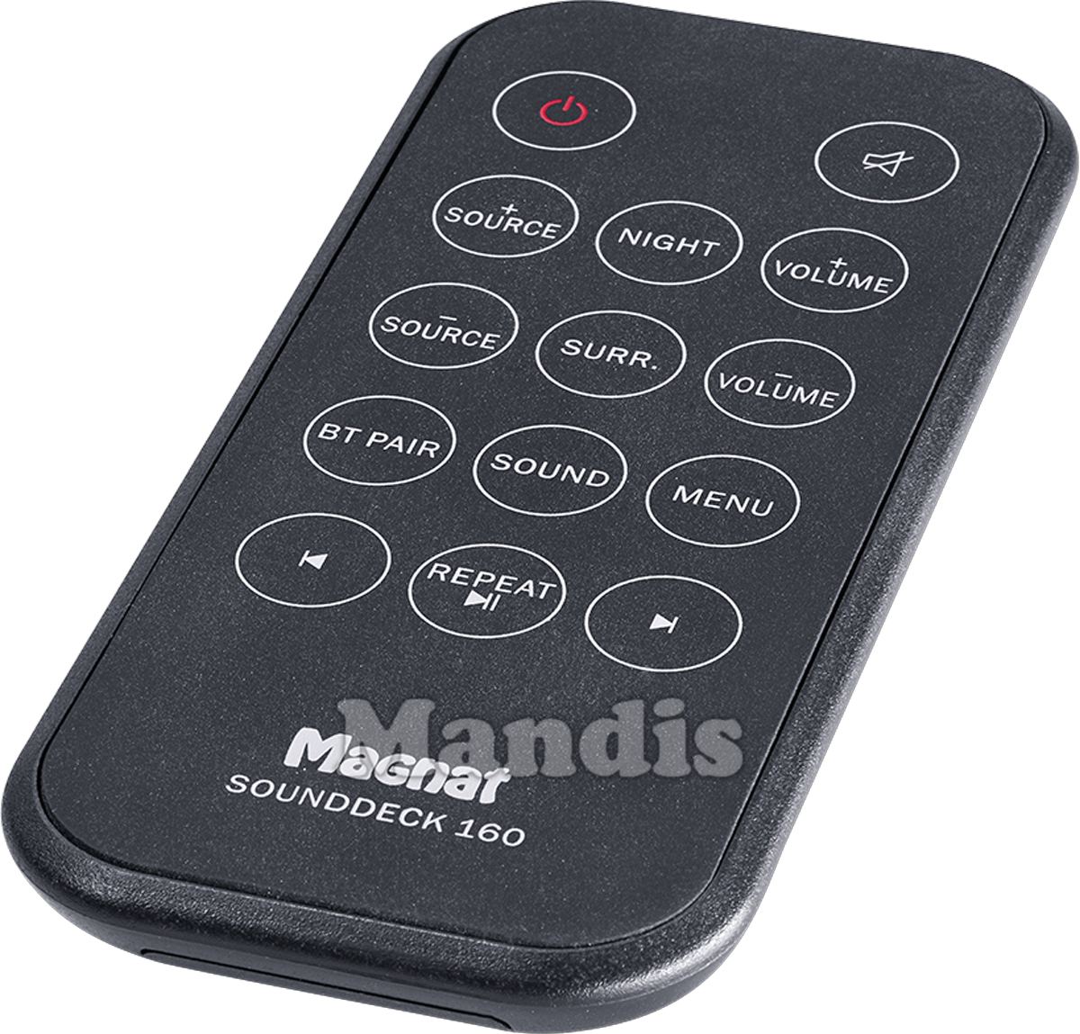 Comandament a distància original Sounddeck160 que serveix per barra so de la marca Magnat. Es tracta d'un model original de comandament a distància.