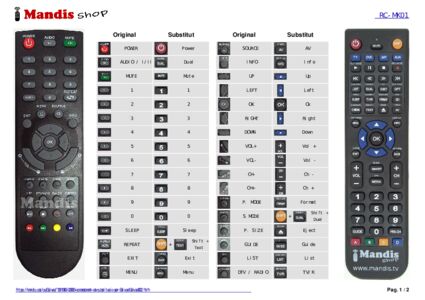 S'inclou un document amb la correspondència dels botons del nou comandament a distància per facilitar el seu ús.