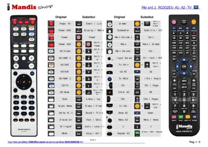 A continuació, us mostrarem la correspondència entre cada un dels botons del comandament original i el botó que realitza la mateixa funció en el comandament de substitució. En alguns casos, és possible que necessiti prémer la tecla SHIFT abans de prémer un altre botó per realitzar certes accions. Aquestes funcions addicionals sovint no s'utilitzen gaire i s'inclouen per facilitar la comprensió del comandament de substitució, o perquè el comandament original té més botons que el seu equivalent.