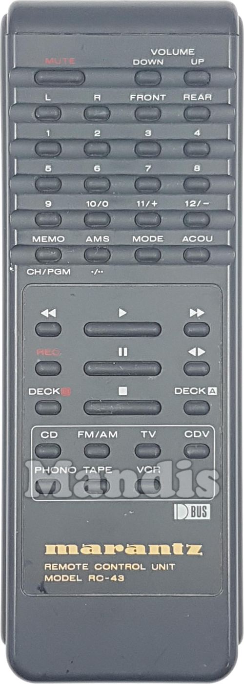 Comandament a distància original RC-43 (482221830467) de la marca Marantz. Es tracta d'un model original de comandament a distància.