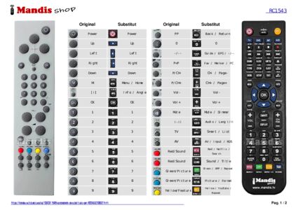 A continuació, us mostrarem la correspondència entre cada un dels botons del comandament original i el botó que realitza la mateixa funció en el comandament de substitució. En alguns casos, és possible que necessiti prémer la tecla SHIFT abans de prémer un altre botó per realitzar certes accions. Aquestes funcions addicionals sovint no s'utilitzen gaire i s'inclouen per facilitar la comprensió del comandament de substitució, o perquè el comandament original té més botons que el seu equivalent.