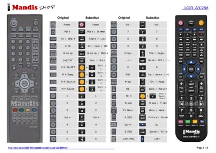 S'inclou un document amb la correspondència dels botons del nou comandament a distància per facilitar el seu ús.