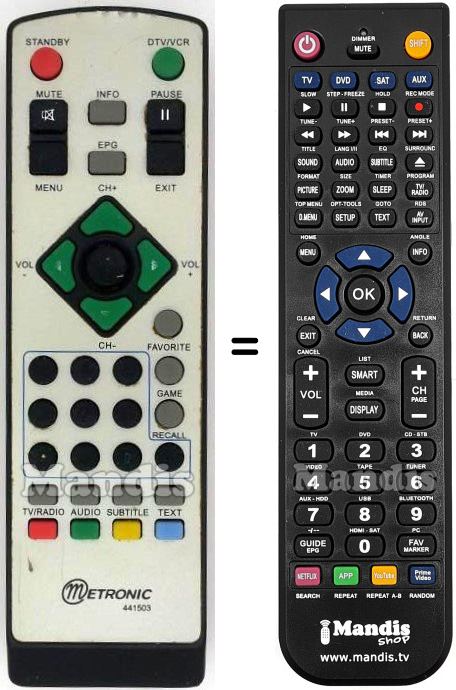 Aquest comandament a distància substitueix completament el teu 441503 en totes les seves funcions. No és un comandament universal, sinó una còpia exacta del teu original.