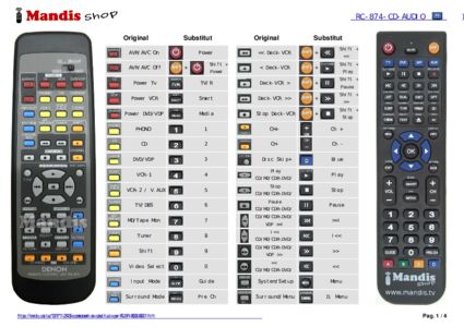 Aquest comandament a distància substitueix completament el teu RC-874 (9630043001) en totes les seves funcions. No és un comandament universal, sinó una còpia exacta del teu original.