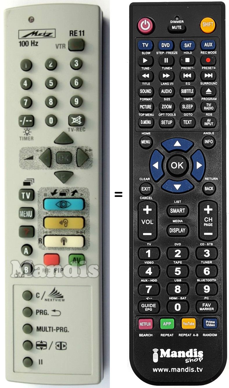 Comandament a distància que substitueix el comandament RE 11 (600RE1167KD) en totes les seves funcions.