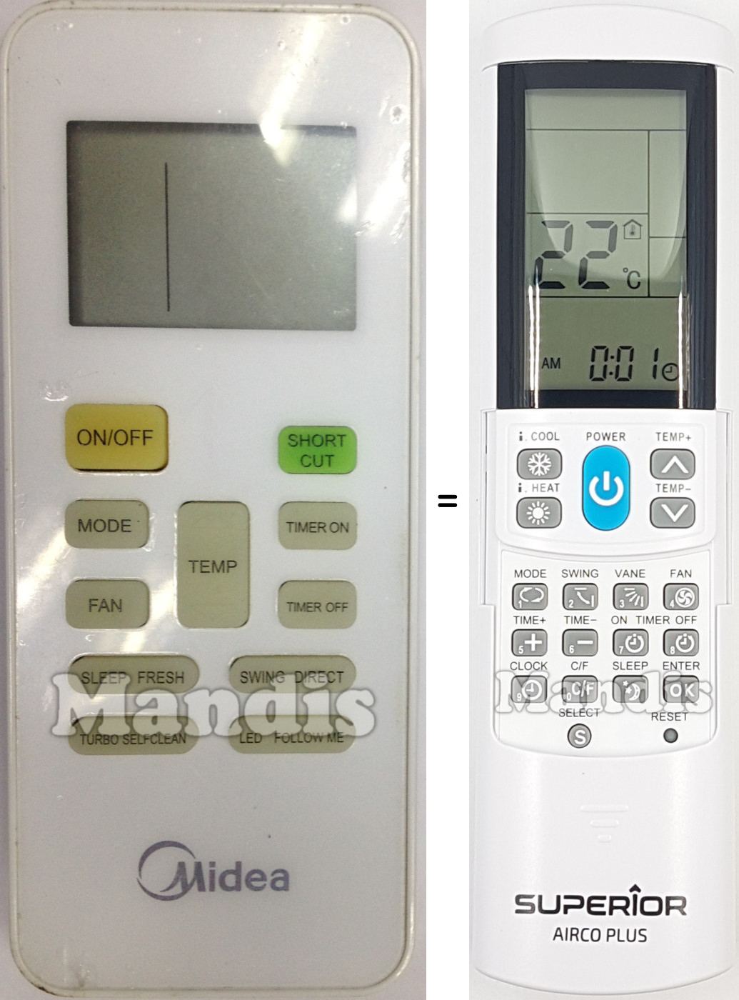 Inici > Marques aire condicionat > Llistat de comandaments per aire condicionat Midea > Comandament universal MIDEA Aircoplus (42530)