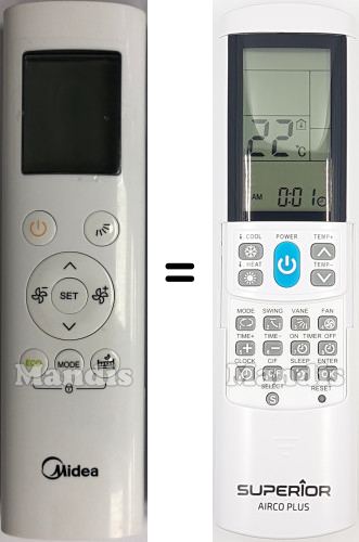 Inici > Marques aire condicionat > Llistat de comandaments per aire condicionat Midea > Comandament universal MIDEA Aircoplus (42530)
