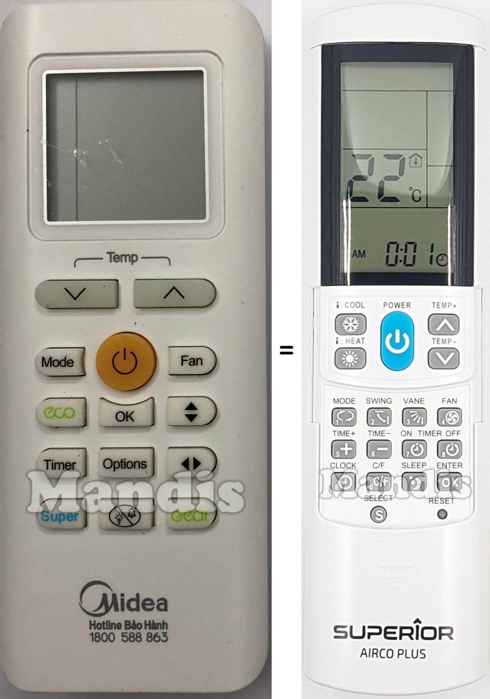 Inici > Marques aire condicionat > Llistat de comandaments per aire condicionat Midea > Comandament universal MIDEA Aircoplus (42530)