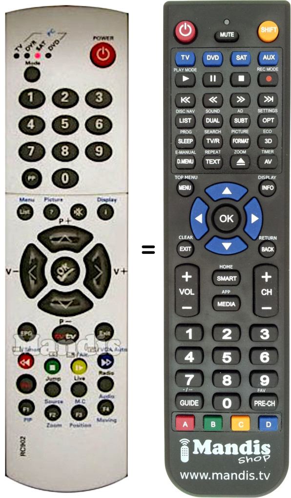 Aquest comandament a distància substitueix completament el teu RC902 en totes les seves funcions. No és un comandament universal, sinó una còpia exacta del teu original.