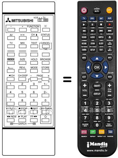 A continuació, us mostrarem la correspondència entre cada un dels botons del comandament original i el botó que realitza la mateixa funció en el comandament de substitució. En alguns casos, és possible que necessiti prémer la tecla SHIFT abans de prémer un altre botó per realitzar certes accions. Aquestes funcions addicionals sovint no s'utilitzen gaire i s'inclouen per facilitar la comprensió del comandament de substitució, o perquè el comandament original té més botons que el seu equivalent.