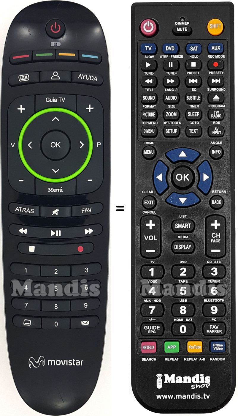 Aquest comandament a distància substitueix completament el teu Movistar-2 en totes les seves funcions. No és un comandament universal, sinó una còpia exacta del teu original.