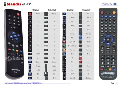 A continuació, us mostrarem la correspondència entre cada un dels botons del comandament original i el botó que realitza la mateixa funció en el comandament de substitució. En alguns casos, és possible que necessiti prémer la tecla SHIFT abans de prémer un altre botó per realitzar certes accions. Aquestes funcions addicionals sovint no s'utilitzen gaire i s'inclouen per facilitar la comprensió del comandament de substitució, o perquè el comandament original té més botons que el seu equivalent.