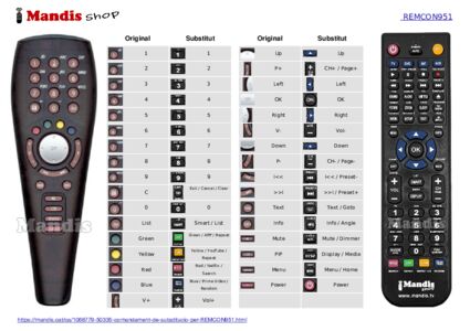 A continuació, us mostrarem la correspondència entre cada un dels botons del comandament original i el botó que realitza la mateixa funció en el comandament de substitució. En alguns casos, és possible que necessiti prémer la tecla SHIFT abans de prémer un altre botó per realitzar certes accions. Aquestes funcions addicionals sovint no s'utilitzen gaire i s'inclouen per facilitar la comprensió del comandament de substitució, o perquè el comandament original té més botons que el seu equivalent.