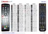 Standby, Subtitle, Audio, Mute, <<, >>, Play / Pause, Stop, I<<, >>I, Menu, Exit, Up / CH+, Down / CH-, Right / Vol+, Left / Vol-, OK, Record, Timeshift, , Recall, 1, 2, 3, 4, 5, 6, 7, 8, 9, 0, , Device, File, Repeat, Teletext, Mosaic, TV/Radio, Info, Red, Green, Yellow, Blue