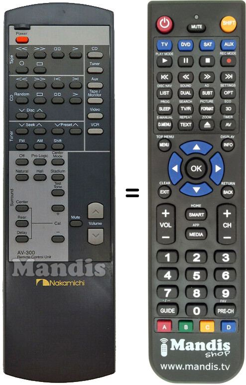 Aquest comandament a distància substitueix completament el teu AV-300 en totes les seves funcions. No és un comandament universal, sinó una còpia exacta del teu original.