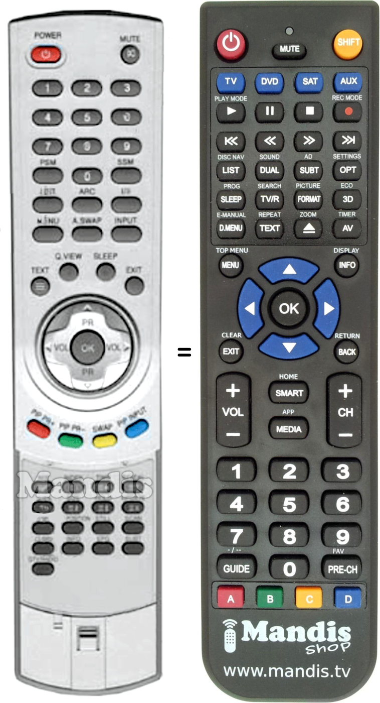 Et oferim un comandament a distància de recanvi que substitueix completament el teu original en totes les seves funcions. No es tracta d'un comandament universal, sinó d'una còpia exacta, amb totes les tecles i funcions idèntiques.