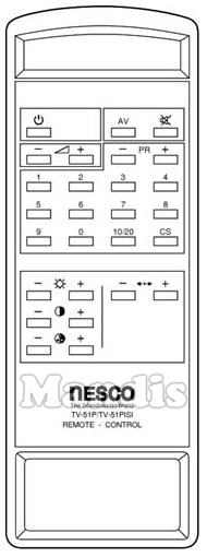 Comandament a distància original TV-51P / TV-51P(S) de la marca Nesco. Es tracta d'un model original de comandament a distància.