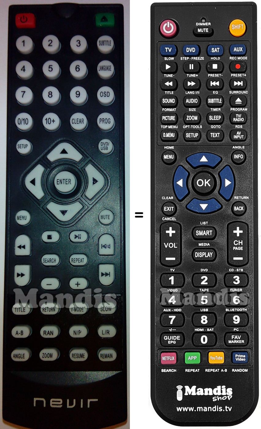 Aquest comandament a distància substitueix completament el teu NVR2316DVD en totes les seves funcions. No és un comandament universal, sinó una còpia exacta del teu original.