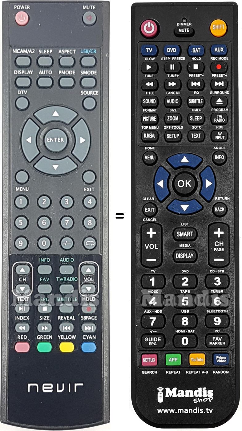 Aquest comandament a distància substitueix completament el teu NVR7023TTG16 en totes les seves funcions. No és un comandament universal, sinó una còpia exacta del teu original.