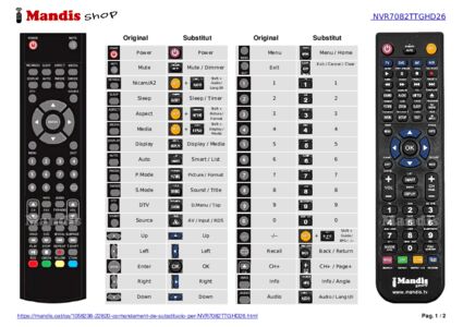 A continuació, us mostrarem la correspondència entre cada un dels botons del comandament original i el botó que realitza la mateixa funció en el comandament de substitució. En alguns casos, és possible que necessiti prémer la tecla SHIFT abans de prémer un altre botó per realitzar certes accions. Aquestes funcions addicionals sovint no s'utilitzen gaire i s'inclouen per facilitar la comprensió del comandament de substitució, o perquè el comandament original té més botons que el seu equivalent.