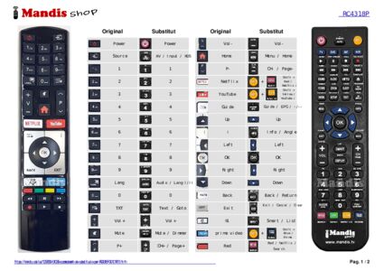 Aquest comandament a distància substitueix completament el teu RC4318P (30101761) en totes les seves funcions. No és un comandament universal, sinó una còpia exacta del teu original.