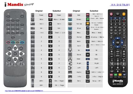 A continuació, us mostrarem la correspondència entre cada un dels botons del comandament original i el botó que realitza la mateixa funció en el comandament de substitució. En alguns casos, és possible que necessiti prémer la tecla SHIFT abans de prémer un altre botó per realitzar certes accions. Aquestes funcions addicionals sovint no s'utilitzen gaire i s'inclouen per facilitar la comprensió del comandament de substitució, o perquè el comandament original té més botons que el seu equivalent.