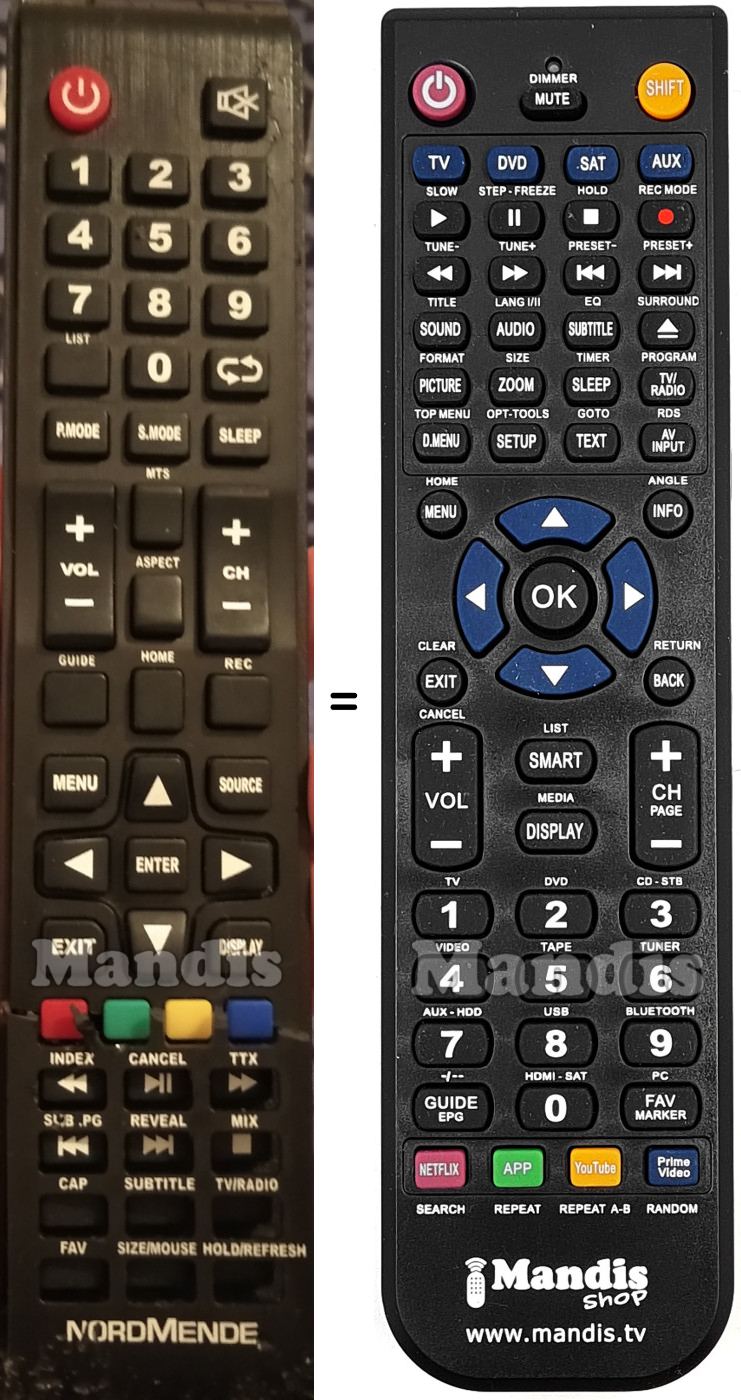Aquest comandament a distància substitueix completament el teu ND32S3200 E SMARTSAT en totes les seves funcions. No és un comandament universal, sinó una còpia exacta del teu original.