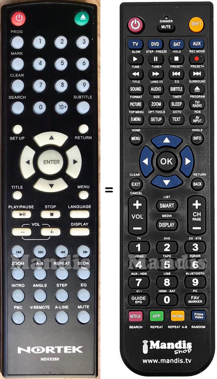 Aquest comandament a distància substitueix completament el teu NDVX280 en totes les seves funcions. No és un comandament universal, sinó una còpia exacta del teu original.