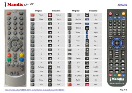 A continuació, us mostrarem la correspondència entre cada un dels botons del comandament original i el botó que realitza la mateixa funció en el comandament de substitució. En alguns casos, és possible que necessiti prémer la tecla SHIFT abans de prémer un altre botó per realitzar certes accions. Aquestes funcions addicionals sovint no s'utilitzen gaire i s'inclouen per facilitar la comprensió del comandament de substitució, o perquè el comandament original té més botons que el seu equivalent.