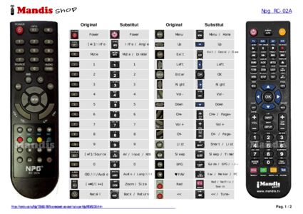 Aquest comandament a distància substitueix completament el teu NPG (RC-02A) en totes les seves funcions. No és un comandament universal, sinó una còpia exacta del teu original.
