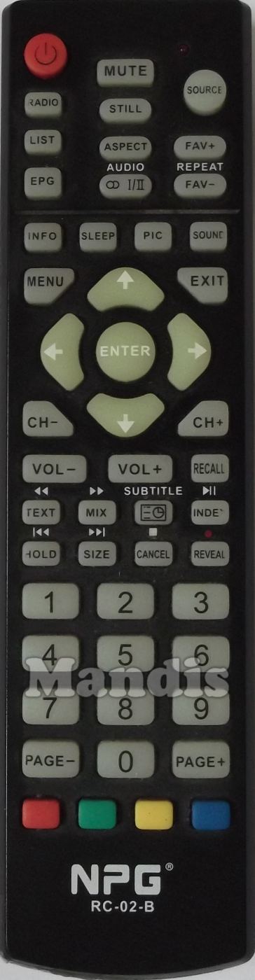 Comandament a distància original RC-02-B que serveix per televisors de la marca Npg. Es tracta d'un model original de comandament a distància.