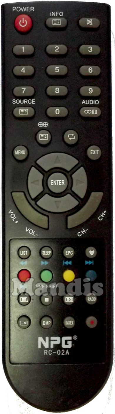 Comandament a distància original NPG (RC-02A) que serveix per televisors de la marca Npg. Es tracta d'un model original de comandament a distància.