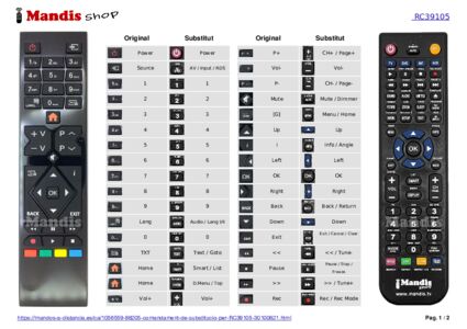 Aquest comandament a distància substitueix completament el teu RC39105 (30100821) en totes les seves funcions. No és un comandament universal, sinó una còpia exacta del teu original.