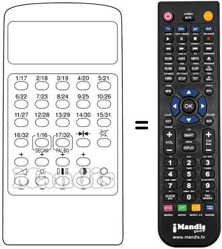 Comandament a distància que substitueix el comandament MULTIMAT 832 en totes les seves funcions.
