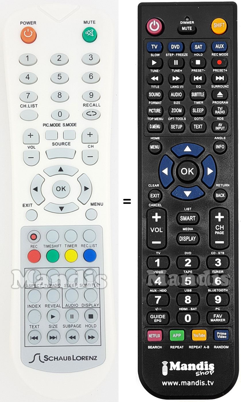 A continuació, us mostrarem la correspondència entre cada un dels botons del comandament original i el botó que realitza la mateixa funció en el comandament de substitució. En alguns casos, és possible que necessiti prémer la tecla SHIFT abans de prémer un altre botó per realitzar certes accions. Aquestes funcions addicionals sovint no s'utilitzen gaire i s'inclouen per facilitar la comprensió del comandament de substitució, o perquè el comandament original té més botons que el seu equivalent.