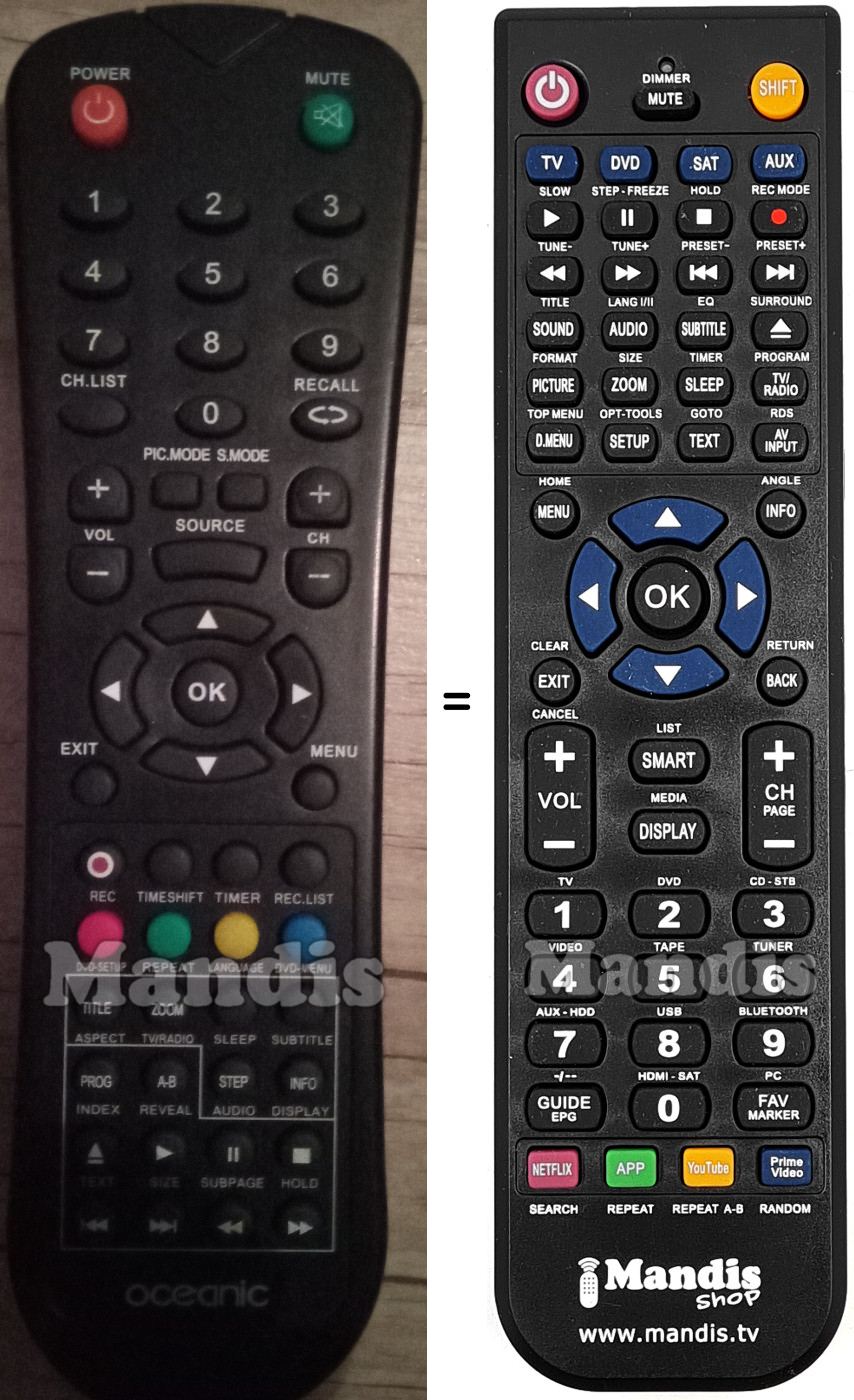 Aquest comandament a distància substitueix completament el teu OCEALED215DVD2 en totes les seves funcions. No és un comandament universal, sinó una còpia exacta del teu original.