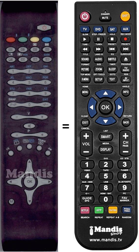 Comandament a distància que substitueix a l'original en totes les seves funcions.