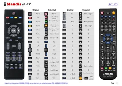 Aquest comandament a distància substitueix completament el teu RC1205B en totes les seves funcions. No és un comandament universal, sinó una còpia exacta del teu original.