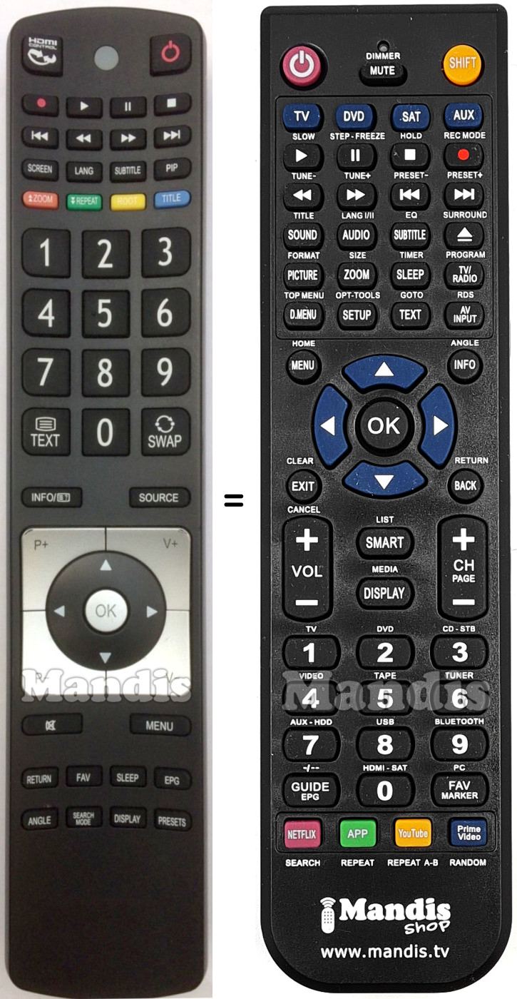 Aquest comandament a distància substitueix completament el teu RC5110 (20547790) en totes les seves funcions. No és un comandament universal, sinó una còpia exacta del teu original.