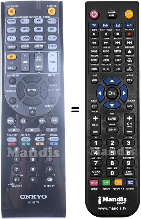 Aquest comandament a distància substitueix completament el teu RC-897M en totes les seves funcions. No és un comandament universal, sinó una còpia exacta del teu original.